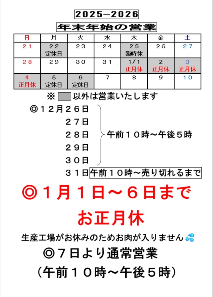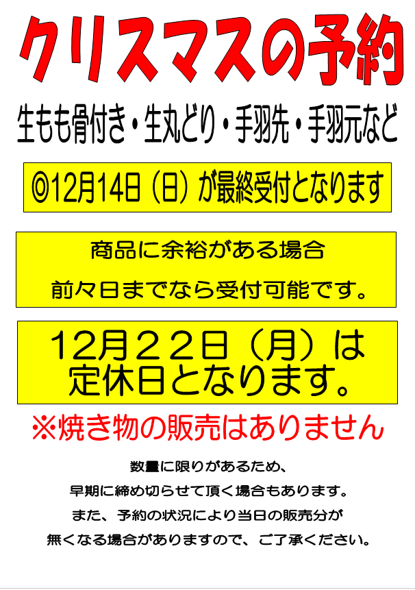 ※特に年末(12月26日以降)は、9時以降でもご予約頂いたお客様の準備並びに開店後は店頭のお客様を優先させて頂きますので、11時頃までお電話に出れないことがあります。